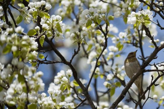 桃樹、杏樹、梨樹,你不讓我,我不讓你,都開滿了花趕趟兒。紅的像火,粉的像霞,白的像雪?;ɡ飵е鹞秲海婚]了眼,樹上仿佛已經(jīng)滿是桃兒、杏兒、梨兒?;ㄏ鲁汕С砂俚拿鄯湮宋说佤[著,大小的蝴蝶飛來飛去。野花遍地是:雜樣兒,有名字的,沒名字的,散在草叢里,像眼睛,像星星,還眨呀眨的。