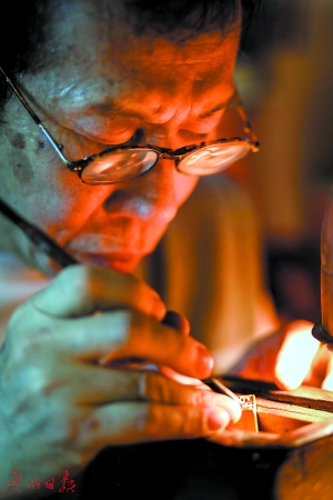 燙金絲印、公章膠印、原子印章……在和平西路9號(hào)有一家毫不起眼的刻章店——秋記刻章工藝,這里記錄著一段百年三代人的篆刻家族史。19世紀(jì)末期,叔公項(xiàng)信南隨著戲班來(lái)到廣州,成為一位金石篆刻名家;20世紀(jì)初,幼年喪父的項(xiàng)少南來(lái)到省城投奔叔叔項(xiàng)信南,也成為知名篆刻藝人,直到90歲高齡仍篆刻不輟;上世紀(jì)60年代,項(xiàng)少南之子項(xiàng)頌秋子承父業(yè),如今已入行57年。如今,隨著機(jī)器刻章的興起,從秋哥變成秋叔的71歲項(xiàng)頌秋卻面臨著手藝失傳。“如果有毅力的人想學(xué),我愿意免費(fèi)教學(xué)。”他說(shuō)。