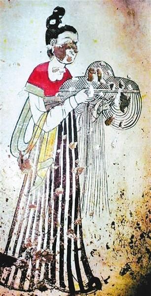 那么,唐初流行了幾十年的“羃”是什么樣子?從文獻(xiàn)記載看,它的特點(diǎn)是“全身障蔽”?!杜f唐書·李密傳》記載李密投降唐朝后再次反叛,帶領(lǐng)上千士兵,化妝成女性,戴羃,羃內(nèi)藏刀,到縣城后,變裝持刀殺出,占領(lǐng)了縣城。我們可以設(shè)想一下,上千“女性”穿戴著羃在道路上行走,路人不僅不以為怪,而且不知是士兵,可見“羃”的流行,以及遮蔽之嚴(yán)??上У氖?,目前從文物資料中還找不到“羃”的確切形象。1990年,在盜掘后的唐太宗燕妃墓壁畫中,有一幅被考古工作者定名為“捧羃女侍圖”,似乎仕女捧的是“羃”。