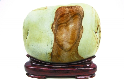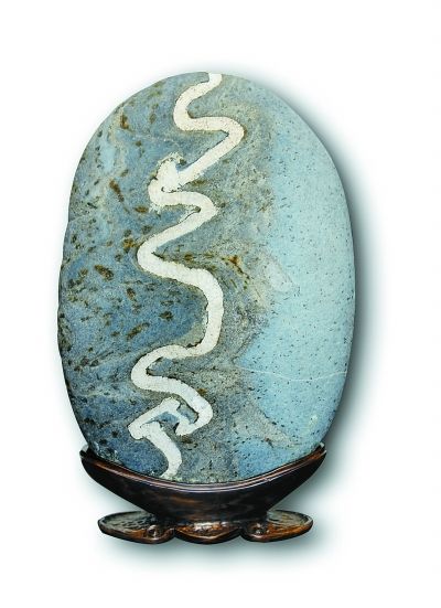 金沙江卵石的種類繁多,主要有芙蓉石、墨畫石、油畫石、龜紋石、螺鈿石、松花石、丹彩石、牧羊石、金剛石、燙畫石、彩蠟石、金沙彩等。這些石頭到底有多好,水富縣的石友們總結(jié)出十大美——天然美、色彩美、線條美、石質(zhì)美、形象美、裝飾美、朦朧美、含蓄美、空靈美、意境美。如果沒(méi)有江水長(zhǎng)年累月的沖刷和搬運(yùn),也就不會(huì)形成這么多美麗的石頭。水富縣奇石辦多次組織當(dāng)?shù)氐氖虆⒓尤珖?guó)石展,幾年來(lái),捧回特等獎(jiǎng)一枚,金獎(jiǎng)185枚,銀獎(jiǎng)420枚,優(yōu)秀獎(jiǎng)600枚。好像是在夸自己,曹會(huì)長(zhǎng)說(shuō)得有些臉紅,用手拍打起石頭來(lái)。在一旁的老伴兒說(shuō),老曹一高興就愛(ài)拍石頭,說(shuō)石頭能聽(tīng)懂他的話。這倒讓我想起著名美學(xué)家王朝聞贊美奇石的一首詩(shī):“石居人外,人在石中。相擊相和,創(chuàng)造對(duì)方?!?/p>
