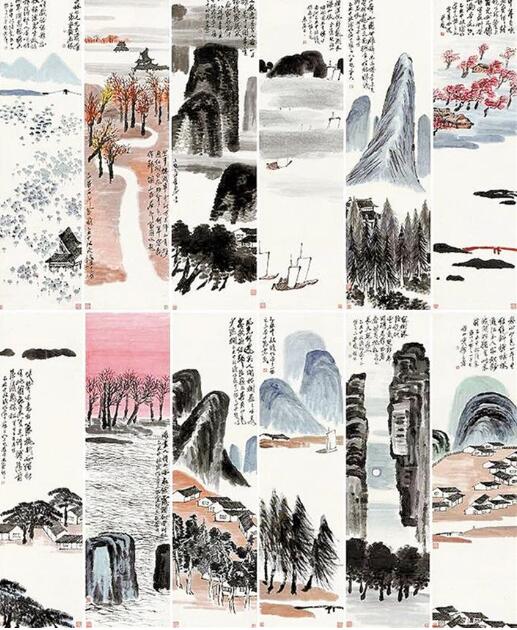 齊白石《山水十二條屏》創(chuàng)作于1925年,那一年齊白石62歲,正是他老年改變繪畫風格的第四個年頭。他拋卻此前中國山水的程式,進入“一洗凡塵萬事空”的真山真水創(chuàng)作境界,這件作品幾乎囊括了齊白石所有山水畫題材,而且每屏上均題有自作詩,鈐蓋齊白石常用印章,“詩書畫印”四絕俱全,堪稱其對山水創(chuàng)作升華后的集大成者?!?記者張 漫子)