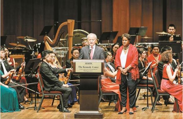 美國當?shù)貢r間2月15日,在首都華盛頓肯尼迪藝術中心,深圳交響樂團首席客席指揮譚盾執(zhí)棒,率小提琴家朱丹、大提琴家聶佳鵬、鋼琴家吳聿敏、嗩吶演奏家劉雯雯以及深交多位演奏家,為美國觀眾送上中國新春音樂會。中西合璧的美妙音樂,世界語言講述的中國故事,不僅獲得中國駐美大使崔天凱點贊,也令當?shù)赜^眾久久沉醉。