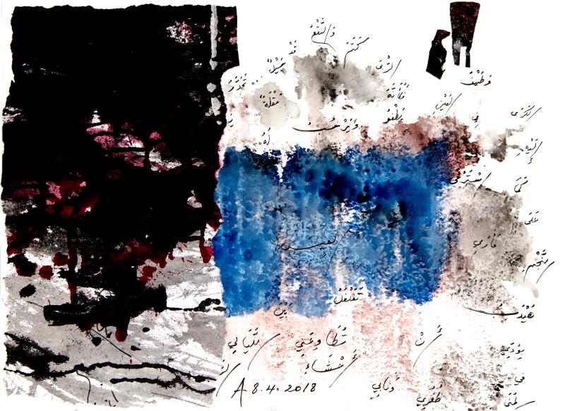 他的這種藝術(shù)實踐也可追溯至維克多·雨果(Victor Hugo)的繪畫,或進(jìn)一步,追溯至對其產(chǎn)生重大影響的超現(xiàn)實主義者那 —— 眾所周知,他們通過詩歌打開人類的感性,就像蘇菲主義,讓人沉浸在充滿詩意、超越一切的忘我境界。一切既相關(guān),又都未完成。阿多尼斯的每件拼貼-繪畫-手稿,都是詩人向我們發(fā)出的一個小小宣言,呼吁一種更開放、更含蓄、更微妙、更深刻、更感官、更有思想、更個性化、更政治化、更即時、更能持久的詩歌藝術(shù)。