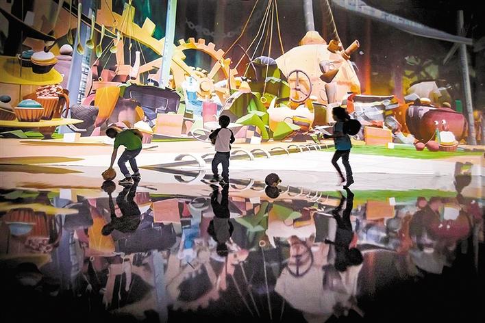▲童話數(shù)字藝術展吸引了許多親子家庭