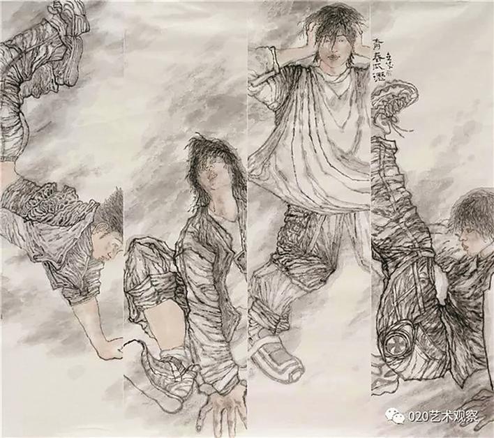 據(jù)悉,原作正是深圳市福田區(qū)美術(shù)家協(xié)會(huì)主席張闖《2004—街舞》布面油彩,有所不同的是涉嫌抄襲的作品是國(guó)畫。從細(xì)節(jié)對(duì)比上看,作品相似度極高。此外,涉嫌抄襲的作品的方向與張闖的原作相反。有人猜測(cè),涉嫌抄襲的作者是將張闖《2004—街舞》通過電腦制作反轉(zhuǎn)過來(lái),或者是投影后制作完成作品的。