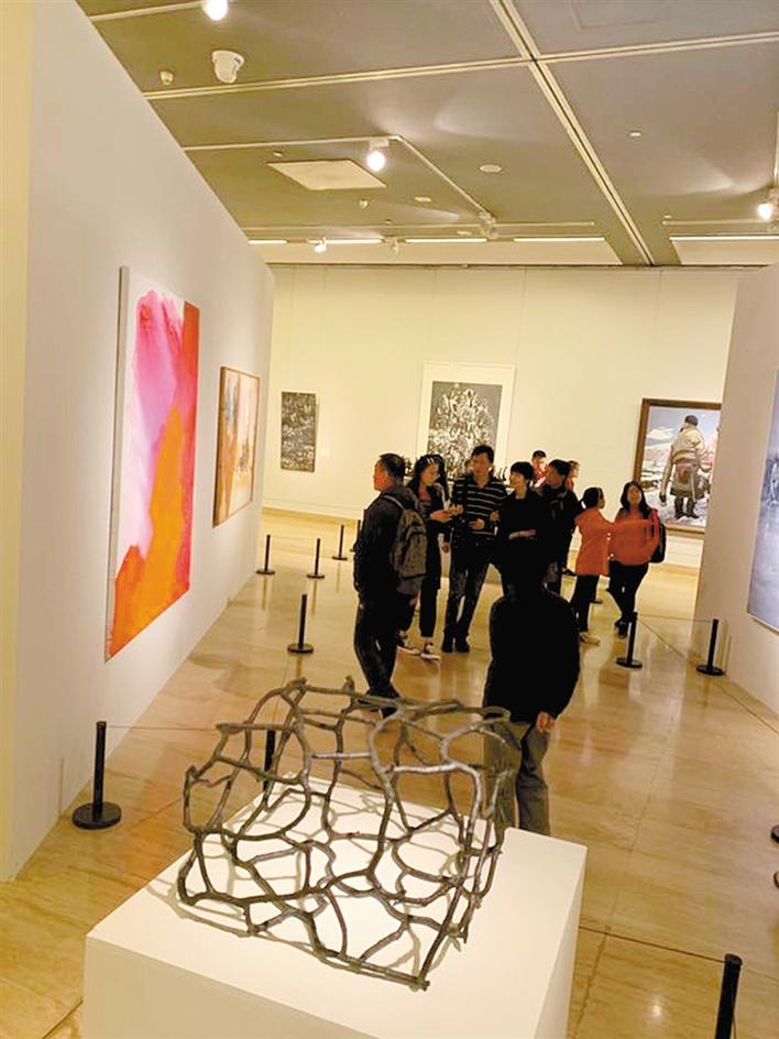 據(jù)了解,作為深圳有史以來規(guī)模最大的晉京美術展覽,“打開的窗口是美麗的——慶祝新中國成立70周年暨深圳建市40周年美術作品展”從3月29日在中國美術館開展以來,在北京掀起了一股觀展熱潮。展期十天,吸引了超過6萬觀眾參觀展覽,平均每天的參觀量超過5000人,清明小長假期間更是每天接待觀眾近萬人次。很多觀眾慕名而來,“這位觀眾就是連續(xù)兩天前來看展的?!闭褂[期間在展廳值班的深圳美術館副館長王子蚺指著一張照片告訴記者。
