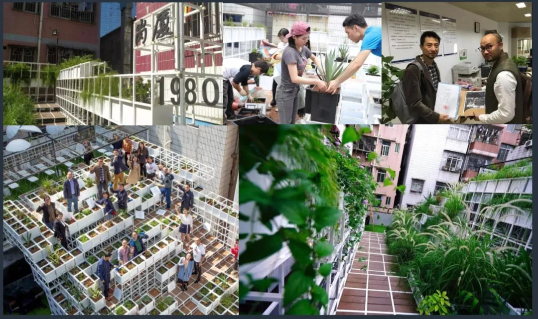 來自本地智慧的聯(lián)合創(chuàng)始人謝克非先生介紹說,作為城中村改造的實(shí)踐者,我們?cè)谧鼍褪侨绾卧谶@些矛盾中獲得共生?;蛘哒f,如何把所有矛盾點(diǎn)結(jié)合起來,讓城中村可以可持續(xù)地發(fā)展。所以在2018年3月聯(lián)合大自然保護(hù)協(xié)會(huì)(TNC)、桃花源生態(tài)保護(hù)基金會(huì)、深圳市城市規(guī)劃設(shè)計(jì)研究院、聯(lián)合公設(shè)發(fā)布了綠色天臺(tái):愚公計(jì)劃2.0——崗廈1980海綿城市綠色屋頂示范項(xiàng)目。這個(gè)綠植天臺(tái)不僅是能夠美化環(huán)境,截存雨水、循環(huán)灌溉綠植等,更重要的是我們希望它作為一個(gè)平臺(tái),把NGO的理念注入城中村,讓大家把對(duì)城中村的注意力從貧富懸殊、拆遷轉(zhuǎn)移到綠色環(huán)保,促進(jìn)可持續(xù)的發(fā)展。這里不僅是個(gè)景觀的平臺(tái),更是內(nèi)容發(fā)動(dòng)機(jī),能夠持續(xù)地產(chǎn)生更多的內(nèi)容。通過藝術(shù)、教育、公益等不同板塊的活動(dòng),以內(nèi)容的方式,把文化、環(huán)保、可持續(xù)發(fā)展等的信號(hào)不斷在這個(gè)點(diǎn)上發(fā)散出去,讓大家重新認(rèn)識(shí)城中村,從持續(xù)性的內(nèi)容信息實(shí)現(xiàn)社區(qū)營(yíng)造,服務(wù)不同階層的人,讓更多人覺得環(huán)保、教育這件事情其實(shí)是非常有趣的,不生硬的,大家會(huì)主動(dòng)繼續(xù)攜手服務(wù)社區(qū)。