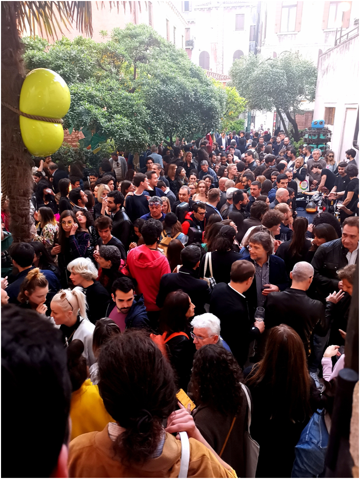 本屆威尼斯藝術(shù)雙年展覽藝術(shù)總監(jiān)為拉夫?魯戈夫(Ralph Rugoff),展覽名為“愿你生活在有趣的時代"(May You Live in Interesting Times)。全球藝術(shù)事務基金會,是荷蘭非營利組織,負責歐洲文化中心(European Cultural Centre)在莫拉宮和本博宮等五個主要展館主辦的大型國際展,邀請了世界各地優(yōu)秀藝術(shù)家參展,展覽現(xiàn)場人山人海,人流量大大超過以往,參觀者大多是來自世界各地藝術(shù)家與藝術(shù)愛好者、藏家、畫廊、策展人、及藝術(shù)機構(gòu)等。