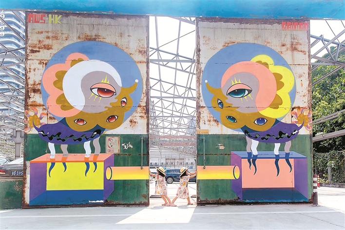 在城市公共空間中,涂鴉藝術(shù)不僅是一種重要的人文景觀,同時(shí)還能給人一種視覺(jué)享受,使單一的生活變得富有色彩。來(lái)自中國(guó)香港的全職藝術(shù)家彭怡擅長(zhǎng)用涂鴉進(jìn)行故事創(chuàng)作,作品《雙觀》以左右對(duì)稱相望的停車場(chǎng)守護(hù)神的形象感染車主與行人,傳達(dá)平穩(wěn)冷靜的力量。同樣來(lái)自中國(guó)香港的涂鴉藝術(shù)家曾昭昶,利用文字涂鴉作品的視覺(jué)誤差,嘗試突破停車格的物理范圍,將平面轉(zhuǎn)為立體,帶來(lái)作品《內(nèi)&外》。