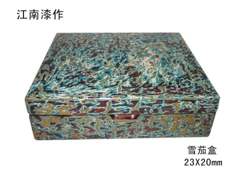 犀皮漆,又稱犀皮、西皮、虎皮漆,此技法起于唐朝,在宋朝時十分流行。羅氏犀皮漆器是我國古代數(shù)百種髹飾漆藝中獨具特色的一種,是傳統(tǒng)的髹飾漆藝在臨海的遺存。從元、明至清道光年間,臨海犀皮髹漆工藝盛極一時。羅氏犀皮漆藝以紅、黑、黃數(shù)色互換融入表面髹飾,以磨顯填漆、髹漆裝飾的一種傳統(tǒng)漆藝。犀皮漆器制作工藝繁瑣,周期長,需耗時六到八個月,分制胎,灰坯,制漆,設色,起紋,填漆,黍包漆,研磨,推光,揩清等十道工序。羅氏犀皮漆器現(xiàn)有三大類,三十多個品種,魔盒類有首飾裝飾盒;文房類有印鑒盒,筆洗,茶葉罐,漆盤,筆筒;碗具類有漆碗,漆盆等。
