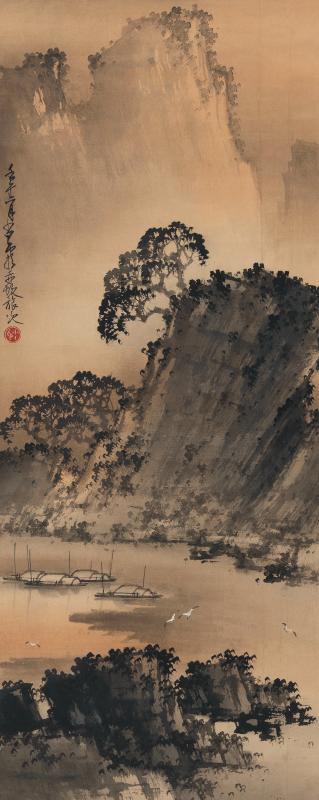 作者:趙少昂 作品名稱:霞山飛鷺圖