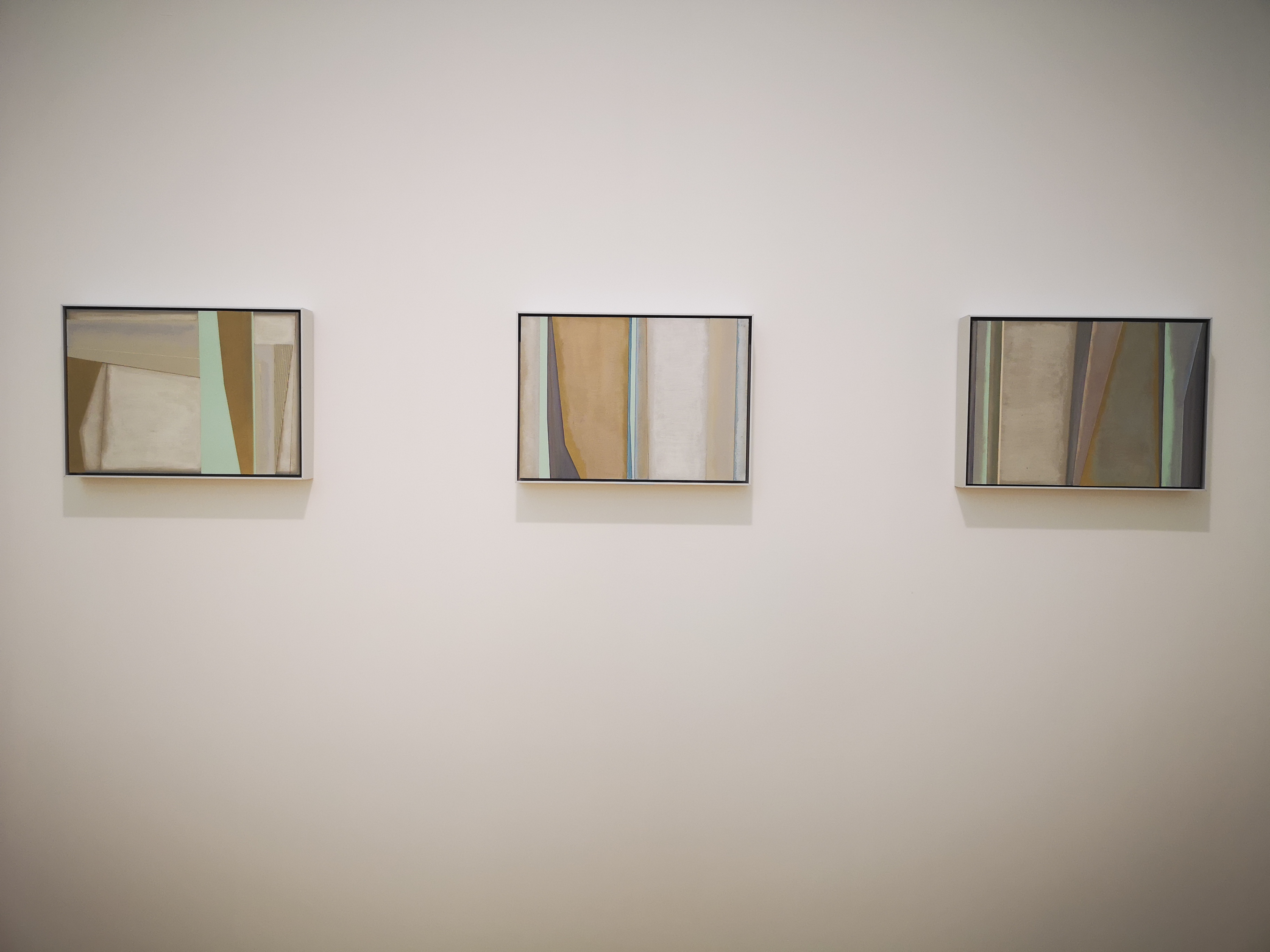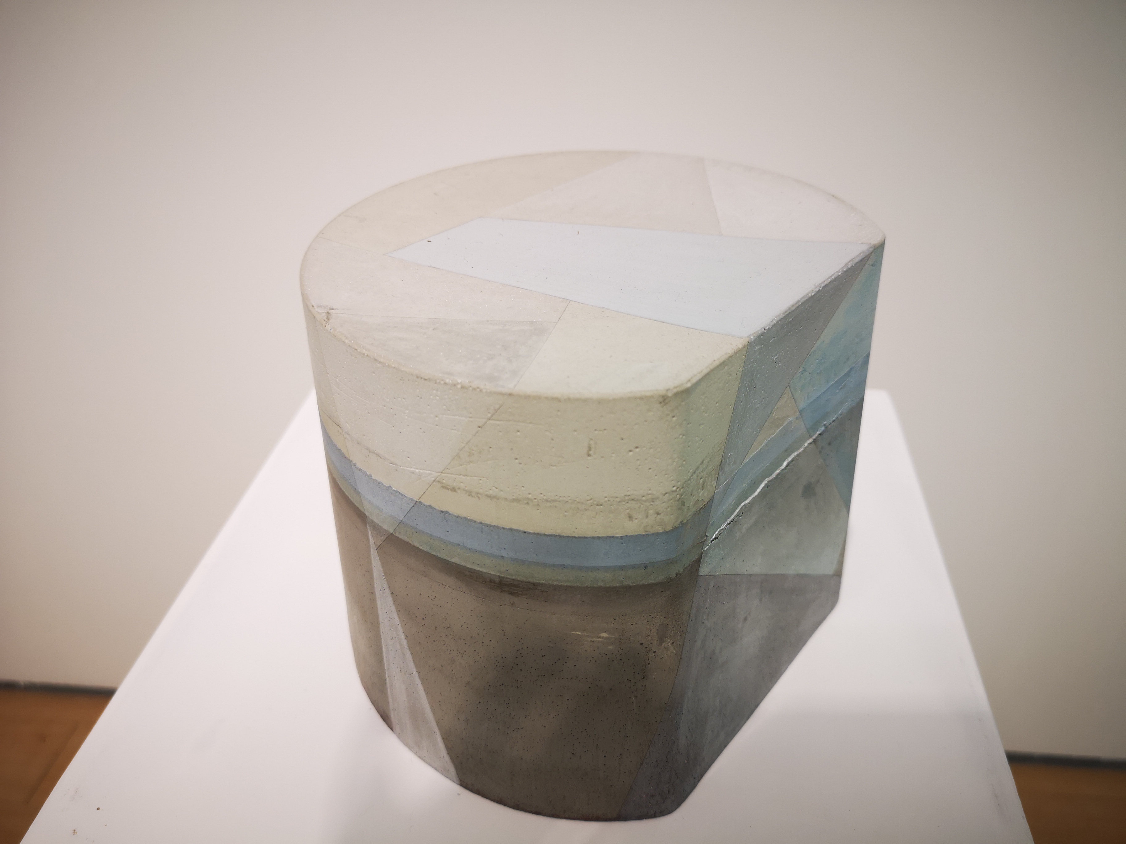 自2013年王豪開始以水泥作為個人創(chuàng)作媒介以來,三個系列“寂”、“樸”、“遠”并行展開?!凹拧焙汀皹恪睆娬{(diào)水泥作品的靜態(tài)特征,不論是單件作品還是多件組合作品,在水泥材料的細微變化與色塊搭配上,力求傳達出一種寧靜、樸拙的整體氣息;“樸”系列在形式上更為豐富,不僅嘗試使用斜線、三角形乃至圓形,還探索富于中國古典韻味的形式表達;“遠”系列的名稱則來源于中國傳統(tǒng)山水繪畫所特有的透視技法“三遠”概念,這系列作品意圖通過畫面的動態(tài)表現(xiàn)打破二維空間限定,拓展平面繪畫的深度與廣度,從美學意境上與高遠、深遠、平遠相融合。
