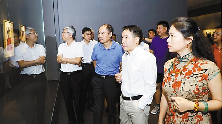 ▲王子武人物畫(huà)作品引起現(xiàn)場(chǎng)嘉賓濃厚興趣(主辦方供圖)