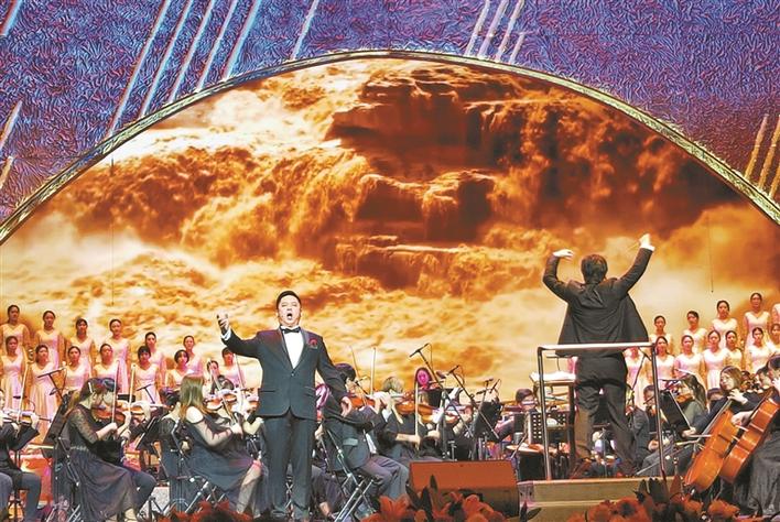 在盧向榮的慷慨激昂的朗誦中,青年歌唱家唱響了整部《黃河大合唱》。通過《黃河船夫曲》《黃河頌》《黃河之水天上來》《黃水謠》《河邊對口曲》《黃河怨》《保衛(wèi)黃河》《怒吼吧,黃河!》八個(gè)樂章,贊美中華民族堅(jiān)貞不屈、頑強(qiáng)抗?fàn)幍挠⑿蹥飧?,為觀眾呈現(xiàn)了一臺(tái)凝聚偉大靈魂、提供強(qiáng)大精神激勵(lì)的聽覺盛宴。