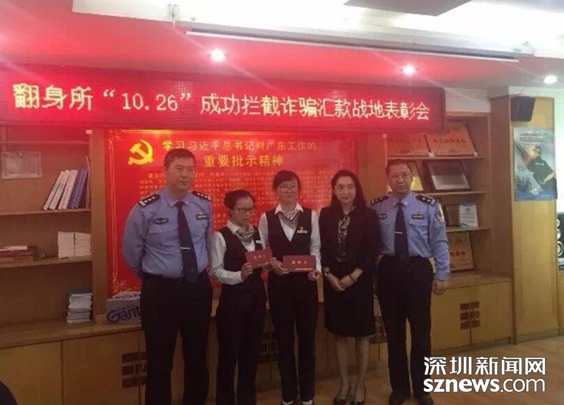 近日,深圳寶安翻身派出所召集轄區(qū)銀行網(wǎng)點(diǎn)負(fù)責(zé)人,舉行“10.26”成功攔截詐騙匯款戰(zhàn)地表彰會(huì),該所所長(zhǎng)親自為行深圳寶安幸福支行兩名攔截有功人員頒發(fā)慰問獎(jiǎng),并對(duì)該行在打擊電信網(wǎng)絡(luò)新型違法犯罪活動(dòng)中勇于擔(dān)當(dāng)社會(huì)責(zé)任,積極開展防范詐騙宣傳教育,注重反詐騙業(yè)務(wù)知識(shí)培訓(xùn)等方面所做出的努力給予充分肯定。