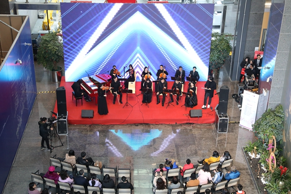琴聲時(shí)而舒緩如流泉,時(shí)而激越如飛瀑,時(shí)而清脆如珠落玉盤(pán),時(shí)而低回如呢喃細(xì)語(yǔ)……鋼琴與提琴交織,管樂(lè)和弦樂(lè)共舞,是的,你沒(méi)有聽(tīng)錯(cuò),這是古典交響樂(lè)在午間響起,在福田CBD,在白領(lǐng)云集的辦公樓,在招商銀行深圳分行大廈的營(yíng)業(yè)大廳里。2018年2月6日,招商銀行深圳分行大廈迎來(lái)了福田愛(ài)樂(lè)樂(lè)團(tuán)午間音樂(lè)會(huì)新年的第三場(chǎng)演出,也是該樂(lè)團(tuán)自2015年創(chuàng)辦午間音樂(lè)會(huì)以來(lái)的第84場(chǎng)演出。高雅的藝術(shù)氣息讓原本單調(diào)的午間趣味橫生,動(dòng)人的場(chǎng)景、美妙的樂(lè)音,在這里一一定格。