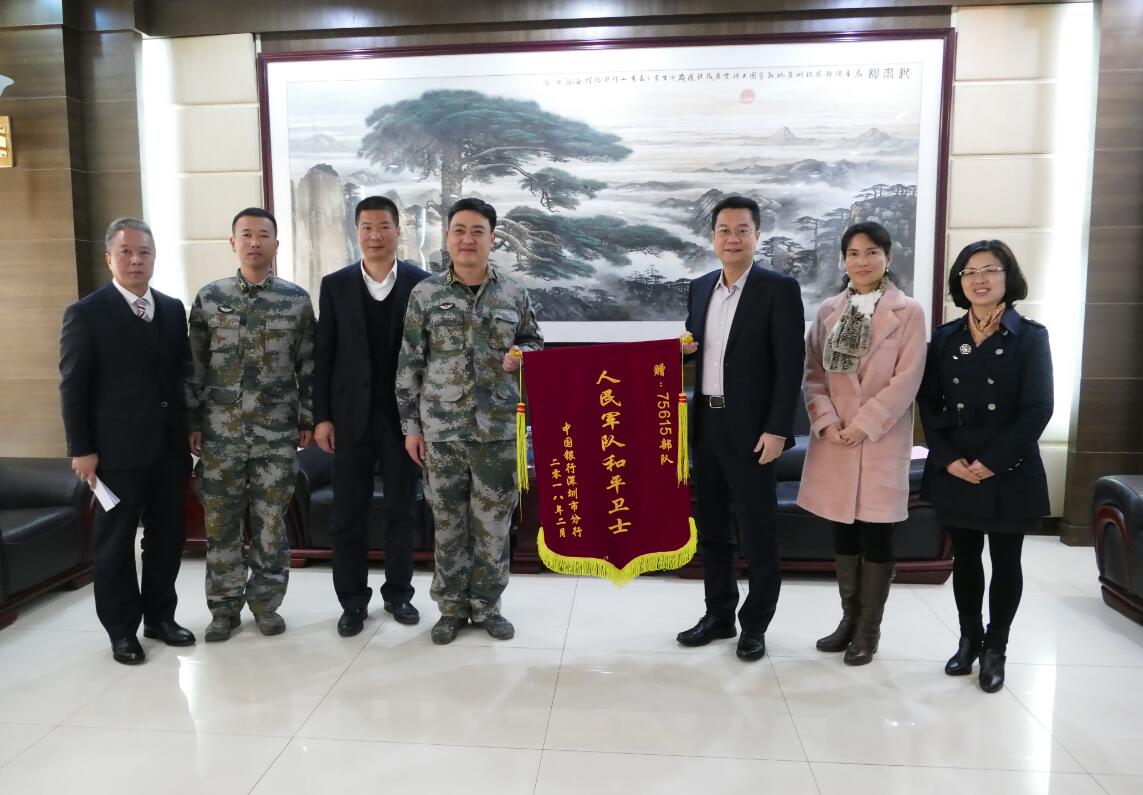 黨的十九大精神和新時(shí)代黨的強(qiáng)軍思想,成為全軍新氣象。與新時(shí)代精神綱領(lǐng)一脈相承,為發(fā)揮軍政軍民團(tuán)結(jié)這一政治優(yōu)勢(shì),弘揚(yáng)軍愛民、民擁軍的光榮傳統(tǒng),同時(shí)積極響應(yīng)2018深圳市新春關(guān)愛行動(dòng),2月7日上午,深圳中行聯(lián)合深圳市關(guān)愛辦赴駐港部隊(duì)深圳教導(dǎo)團(tuán)開展“承襲擁軍傳統(tǒng)、共敘魚水深情”主題新春慰問暨黨建學(xué)習(xí)進(jìn)軍營系列活動(dòng),以實(shí)際行動(dòng)踐行愛心優(yōu)良傳統(tǒng),表達(dá)對(duì)軍人的關(guān)切問候和崇高致意。