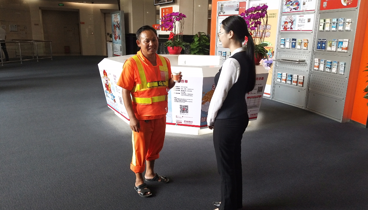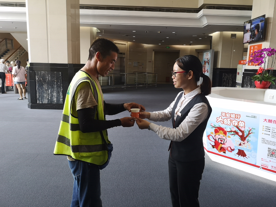 炎炎夏日,清潔工、建筑工人、快遞員等戶外工作者,頭頂著烈日、在滾滾熱浪中辛苦工作,守護著城市的安寧與美麗。為了關愛這些戶外工作者,傳遞社會正能量,踐行社會責任,平安銀行在全國網點發(fā)起了“夏日送清涼?平安更懂你”公益行動。該行深圳分行也在深圳地區(qū)100多家網點全面開展了此項公益活動,在炎熱的夏日為戶外工作者送去一份關愛。