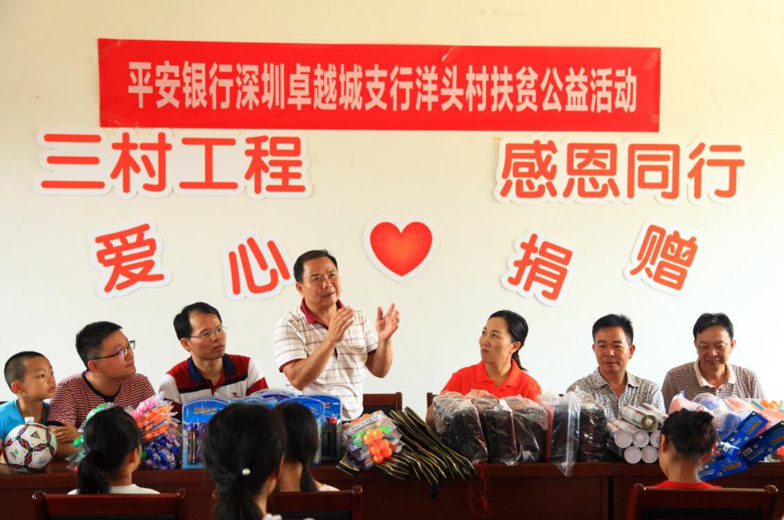 深圳新聞網(wǎng)訊 8月19日上午,為響應(yīng)平安集團(tuán)“三村工程”建設(shè)和平安銀行總、分行黨委關(guān)于扶貧工作的號(hào)召,踐行社會(huì)責(zé)任,平安銀行深圳卓越城支行客戶(hù)、員工一行25人前往該行對(duì)口扶貧村紫金縣龍窩鎮(zhèn)洋頭村開(kāi)展了扶貧公益活動(dòng)。