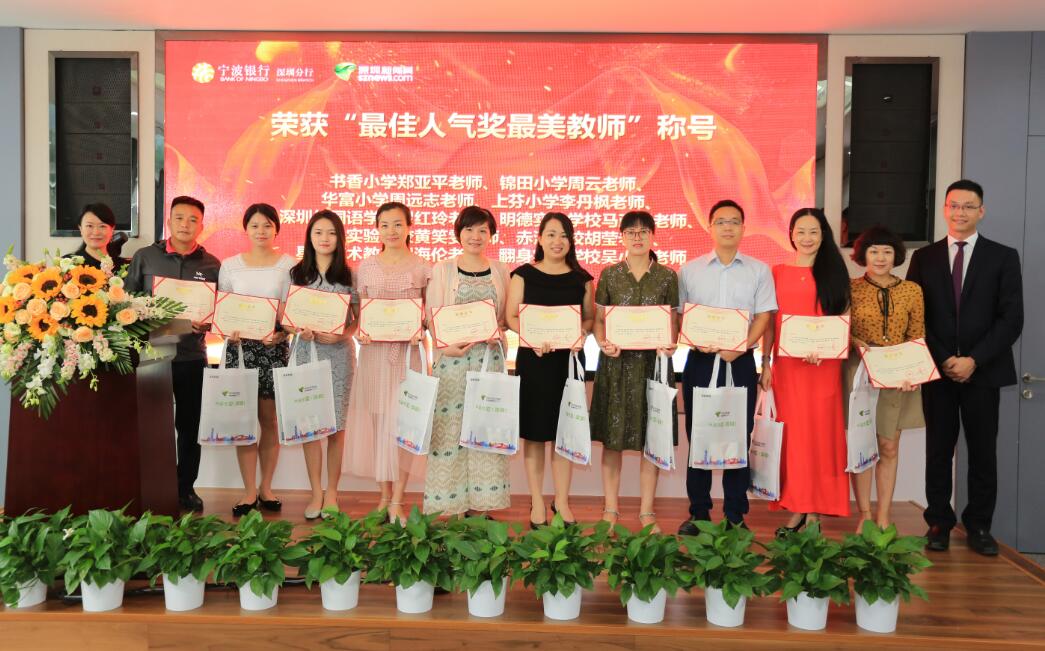 深圳新聞網(wǎng)訊 (記者朱琳江書劍)“國將興,必貴師而重傅?!崩蠋熥鳛椤白饚熤氐馈本竦谋憩F(xiàn)主體,傳道受業(yè)解惑,為社會發(fā)展不斷輸送著優(yōu)質人才。2018年9月8日教師節(jié)前夕,由深圳新聞網(wǎng)、寧波銀行深圳分行聯(lián)合主辦的首屆“鵬城最美教師”風采展示公益活動頒獎儀式在寧波銀行深圳分行隆重舉行?;顒幼?018年3月2日啟動以來,吸引了深圳市各中小學校的廣泛關注,經過半年時間的尋找與舉薦,共有34位優(yōu)秀教師獲“鵬城最美教師”殊榮。其中有10位教師,通過網(wǎng)絡獻花獲得“最佳人氣獎最美教師”榮譽稱號。