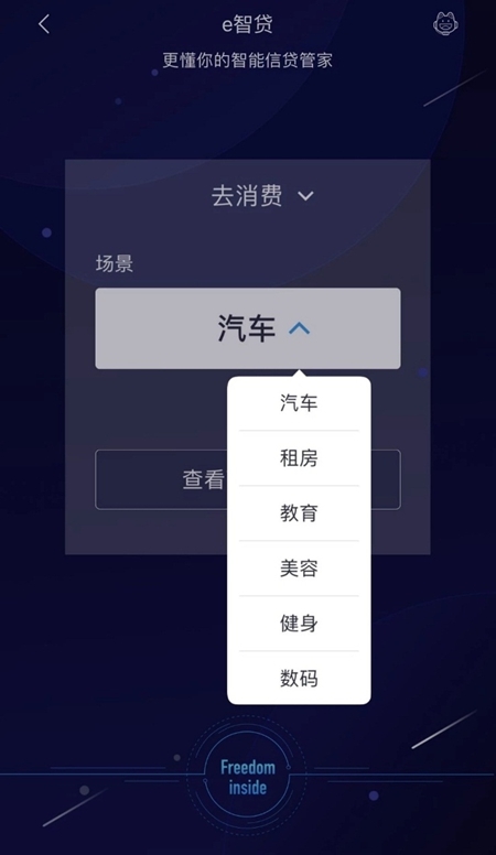 在客戶(hù)點(diǎn)擊e智貸后,F(xiàn)reedom還會(huì)根據(jù)客戶(hù)需求通過(guò)點(diǎn)擊「去消費(fèi)」就能推薦汽車(chē)、租房、教育、美容、健身、數(shù)碼等服務(wù),助力客戶(hù)開(kāi)啟品質(zhì)生活。