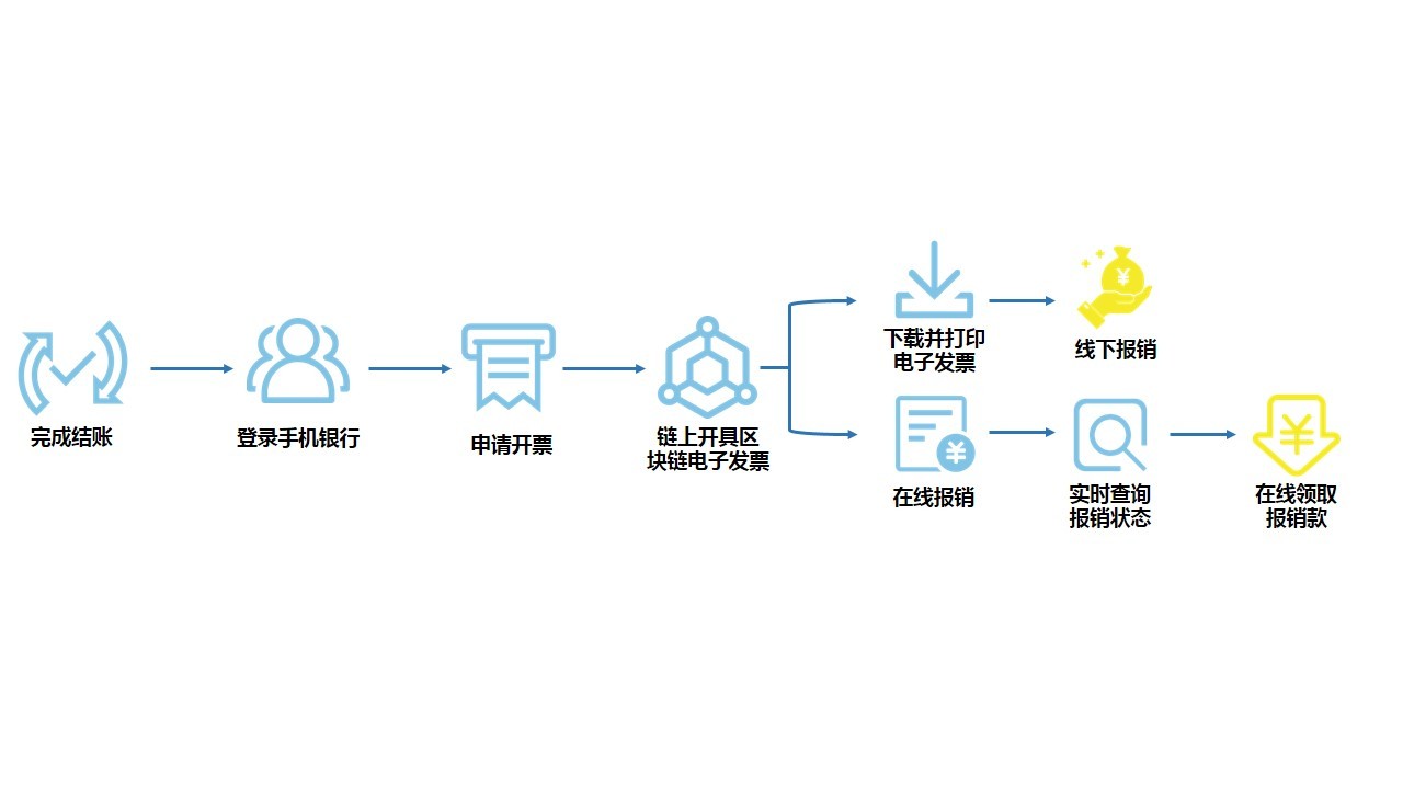 完成試運行階段后,招商銀行客戶在結(jié)賬后即可通過手機自助申請開票和一鍵報銷,發(fā)票信息將實時同步至企業(yè)和稅務(wù)機關(guān),平臺支持線上領(lǐng)取報銷款,報銷狀態(tài)實時查詢。