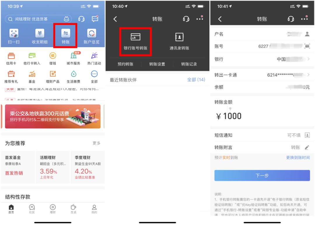 打開招商銀行APP,在首頁點(diǎn)擊“轉(zhuǎn)賬”進(jìn)入轉(zhuǎn)賬頁面。點(diǎn)擊“銀行賬號(hào)轉(zhuǎn)賬”,根據(jù)提示完成轉(zhuǎn)賬即可完成還款,還可以為親友信用卡免費(fèi)還款。