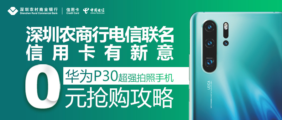 此次深圳農(nóng)商行與深圳電信開展的“零元搶購攻略”活動,就是針對眼下炙手可熱的華為P30系列手機。客戶辦理電信199元暢享套餐凍結(jié)信用卡額度4320元,持續(xù)凍結(jié)38個月,即可0元購買P30(8GB+128GB)。