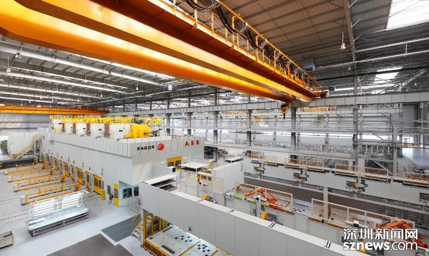 車身車間總占地面積9.9萬㎡,采用互聯機器人、柔性NC定位系統(tǒng)、柔性夾具切換系統(tǒng)、自動化輸送系統(tǒng),標準化工藝體系、三層環(huán)網智能管理系統(tǒng)、國際安全標準,主線自動化率95%;采用柔性智能生產線,在同一條生產線可完成8個不同的車型無節(jié)拍損失自動切換和混線生產。
