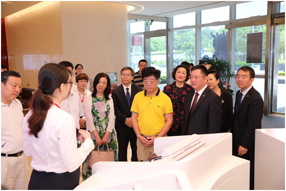 在華夏銀行深圳分行黨委書記、行長陳傳龍的陪同下,深商聯(lián)會(huì)長、執(zhí)行會(huì)長及各企業(yè)家來到分行營業(yè)部,考察調(diào)研智慧網(wǎng)點(diǎn)建設(shè)情況,在工作人員講解下,現(xiàn)場觀摩體驗(yàn)了“人臉識別+指靜脈”智能機(jī)具應(yīng)用,對營業(yè)網(wǎng)點(diǎn)智能化、專業(yè)化服務(wù)水平給予肯定。同時(shí),參觀黨員之家、職工之家、青年之家,現(xiàn)場感受華夏銀行深圳分行企業(yè)文化建設(shè)。隨后,雙方高管進(jìn)行了親切座談。