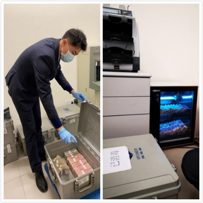 為嚴防交叉感染,該行堅持對現(xiàn)金業(yè)務(wù)進行收支分離,優(yōu)先安排各券別原封新券對外支付,收入現(xiàn)金單獨存放,凈化現(xiàn)金倉儲環(huán)境。在自助設(shè)備方面,該行關(guān)閉所有現(xiàn)金自助設(shè)備循環(huán)功能,最大限度的保障人民群眾的身體健康,讓廣大人民群眾存得“安心”,用得“放心”。