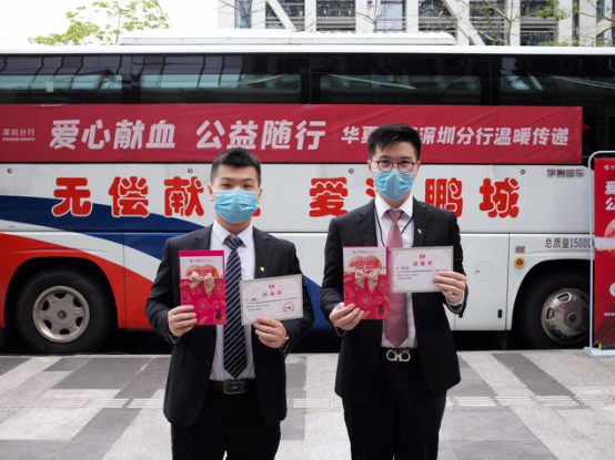 華夏銀行深圳分行行領(lǐng)導(dǎo)先后看望、慰問(wèn)獻(xiàn)血員工。深圳市血液中心向華夏銀行深圳分行頒授感謝獎(jiǎng)牌,深圳分行孫海強(qiáng)副行長(zhǎng)代表分行向血液中心捐贈(zèng)1000只口罩。