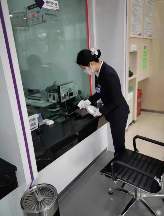 支行已經(jīng)復(fù)工,疫情防控不能停。支行在疫情期間,仍然積極營銷客戶,辦理業(yè)務(wù),持續(xù)營銷支行重要客戶,例如福光集團(tuán)股份有限公司。鄭瓊君每天都會在一線幫助做好疫情防控工作,確保大家的防疫物資齊備,確保支行消毒到位,給客戶們創(chuàng)造安全的廳堂環(huán)境。