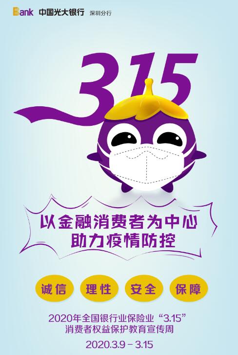 深圳新聞網(wǎng)3月13日訊(記者 朱琳 通訊員 樓蓉 李昕)近日,2020年“3·15消費者權益保護教育宣傳周”正式啟動。與往年不同,今年一場突如其來的新冠肺炎疫情席卷全國。面對疫情危機,中國光大銀行深圳分行積極行動,在滿足特殊時期客戶服務需求的同時,以“以金融消費者為中心,助力疫情防控”為主題,通過做好線上金融知識宣傳,創(chuàng)新金融服務模式,打造安全營業(yè)環(huán)境,提高客戶滿意度,推動消費者權益保護工作。光大銀行深圳分行以優(yōu)質、高效、貼心的金融服務,為防控阻擊戰(zhàn)、發(fā)展陣地戰(zhàn)“兩個戰(zhàn)場”貢獻光大力量。