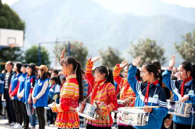 圍繞運(yùn)動會,志愿者帶領(lǐng)孩子做了各種準(zhǔn)備。體育科班出身的志愿者,為孩子們帶來了足球、籃球和排球課。雖然上課的時(shí)間不長,可孩子們對這些運(yùn)動表現(xiàn)出極大的熱情。籃球架下站滿了個(gè)子高矮不一的學(xué)生,山間的空地成為足球場,拋扔排球成為新的運(yùn)動項(xiàng)目。音樂老師為學(xué)校組織了第一支小樂隊(duì),美術(shù)老師教孩子們畫出了他們心目的亞運(yùn)會……每一個(gè)孩子都自信地做特長展示。