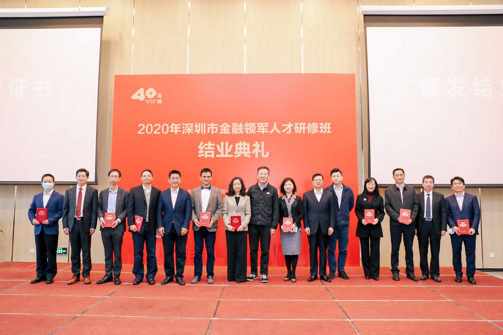 平生書記在致辭中表示,2020年是極不平凡的一年,是金融機構(gòu)積極主動作為、彰顯責任擔當?shù)囊荒?,也是深圳金融業(yè)逆勢而上,保持平穩(wěn)健康發(fā)展的一年,金融機構(gòu)對全市統(tǒng)籌疫情防控和經(jīng)濟社會發(fā)展作出了重要貢獻,金融業(yè)在全市經(jīng)濟增長實現(xiàn)V形反轉(zhuǎn)、率先翻正中發(fā)揮了“壓艙石”作用,這些成績來自每一位金融人才的拼搏奮斗,領(lǐng)軍人才為行業(yè)發(fā)展做出了積極的貢獻。研修班期間,學員們一起聆聽名家大咖講課、踴躍參加主題論壇、認真撰寫調(diào)研報告,還開展了閉門研討、名企考察、交流互訪等形式多樣的活動,既豐富了知識、開闊了眼界,也促進了交流、收獲了友誼,總體達到了預(yù)期效果,為全面實施“深圳百千萬金融人才培養(yǎng)工程”奠定了扎實基礎(chǔ)。他希望學員學思悟踐、學以致用,緊抓粵港澳大灣區(qū)、先行示范區(qū)“雙區(qū)驅(qū)動”和綜合改革試點的重大歷史機遇,聚焦制約行業(yè)發(fā)展重點難點問題,深入研究、謀篇破題,為深圳金融業(yè)高質(zhì)量發(fā)展做出更大貢獻。