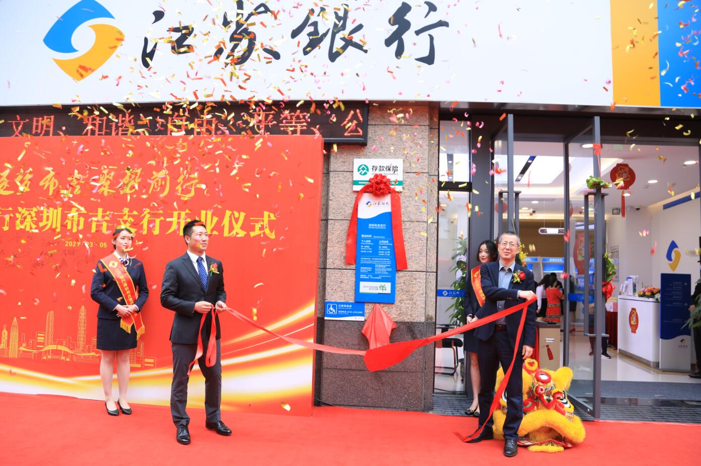 深圳新聞網(wǎng)·見圳客戶端2021年3月5日訊 3月5日,江蘇銀行深圳布吉支行開業(yè)儀式圓滿舉行,龍崗區(qū)金融辦相關(guān)領(lǐng)導(dǎo)、各界企業(yè)嘉賓出席開業(yè)儀式。江蘇銀行深圳分行副行長(zhǎng)張慶光與布吉支行負(fù)責(zé)人共同為支行揭牌,隨著紅綢的落下,宣告了布吉支行正式揭牌開業(yè),揭開了江蘇銀行深圳布吉支行“逐夢(mèng)布吉,聚勢(shì)前行”的序幕。