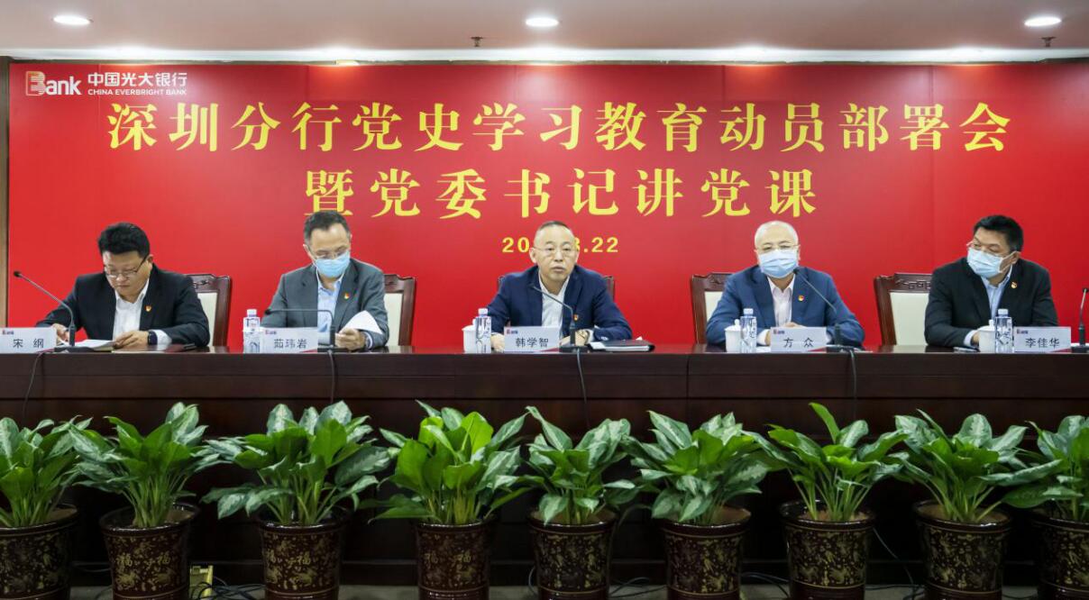 深圳新聞網(wǎng)·見圳客戶端2021年3月23日訊 知其史方能激其志,激其志方能盡其責(zé)。昨日,光大銀行深圳分行舉行黨史學(xué)習(xí)動員部署會暨黨委書記講黨課,學(xué)習(xí)貫徹習(xí)近平總書記在黨史學(xué)習(xí)教育動員大會上的重要講話精神和李曉鵬董事長集團黨史學(xué)習(xí)教育動員部署會講話精神。分行黨委書記、行長韓學(xué)智全面動員部署黨史學(xué)習(xí)教育工作,并講《學(xué)習(xí)中共黨史 牢記使命擔(dān)當(dāng)—中國共產(chǎn)黨從“一大”到“三大”的歷史沿革》專題黨課。分行黨委委員、紀(jì)委書記方眾主持會議并對《深圳分行黨委黨史學(xué)習(xí)教育工作方案》進行了宣講和具體工作部署,分行領(lǐng)導(dǎo)班子成員和全體中層干部共160多人參加會議。