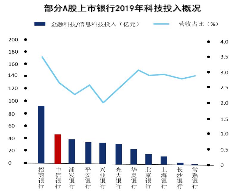 出國金融、青少年、女性、老年不同的細分客群,會有不同的“金融+非金融”服務(wù)方式……中信銀行一直有感知不同人群溫度的傳統(tǒng),但是要上規(guī)模積累出核心優(yōu)勢,離不開科技。今年,中信銀行確定了“以數(shù)字化轉(zhuǎn)型為主線,推動零售經(jīng)營管理體系迭代升級”的發(fā)展策略。2020年中信銀行科技投入69.26億元,位居股份制銀行第二,依舊在排名上咬著招商。
