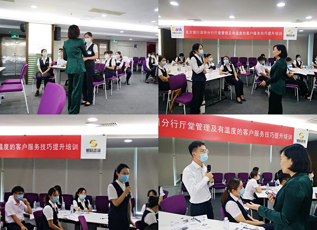 深圳新聞網(wǎng)·見圳客戶端2021年5月27日訊 今日,光大銀行深圳分行成功舉辦“廳堂管理及有溫度的客戶服務(wù)技巧提升”第一期專題培訓(xùn),各支行大堂經(jīng)理及大堂助理共50余人參加培訓(xùn)。培訓(xùn)強化了員工對大堂崗位的認識和理解,進一步提升了廳堂人員服務(wù)工作意識與質(zhì)量,是深圳分行陽光服務(wù)工作邁入新階段的一個里程碑。