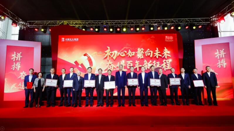 深圳新聞網(wǎng)2021年6月30日訊 為慶祝中國共產(chǎn)黨成立100周年,激勵廣大黨員群眾愛黨敬黨,牢記初心使命,進(jìn)一步擔(dān)當(dāng)作為、奮發(fā)有為,6月28日,光大集團(tuán)在中國光大中心舉辦“初心如磐向未來奮進(jìn)百年新征程”七一主題黨日活動?;顒蝇F(xiàn)場,光大集團(tuán)黨委書記、董事長李曉鵬帶領(lǐng)新黨員代表宣誓、全體與會黨員重溫入黨誓詞;集團(tuán)領(lǐng)導(dǎo)為“光榮在黨50年”紀(jì)念章獲得者代表頒發(fā)紀(jì)念章,為光大集團(tuán)優(yōu)秀共產(chǎn)黨員代表、優(yōu)秀黨務(wù)工作者代表、先進(jìn)基層黨組織代表、脫貧攻堅先進(jìn)集體和個人代表、“永遠(yuǎn)跟黨走唱響主旋律”慶七一歌唱比賽獲獎單位頒獎,集團(tuán)原董事長邱晴和部分黨員代表講述了他們的入黨故事。
