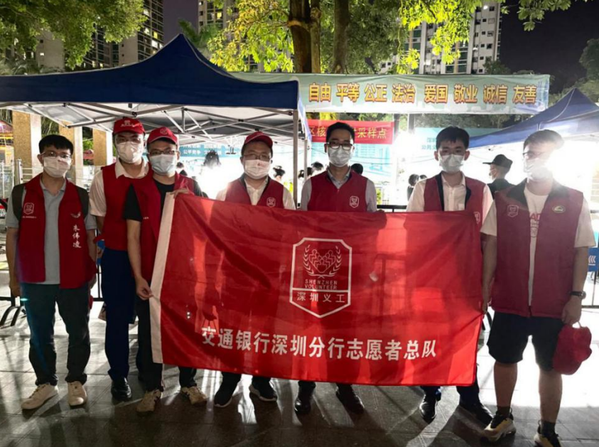 深圳交行還積極響應深圳團市委、深圳市義工聯(lián)合會號召,向青年員工發(fā)出志愿服務倡議,組織廣大青年團員積極參與到核酸檢測志愿者隊伍中,筑牢疫情防控青春戰(zhàn)線。該行團委、福田支行團支部、光明支行團支部和羅湖支行團支部等多家單位志愿者深入社區(qū),在多處核酸檢測采樣區(qū)域,都能夠看到身穿紅馬甲的交行青年志愿者。