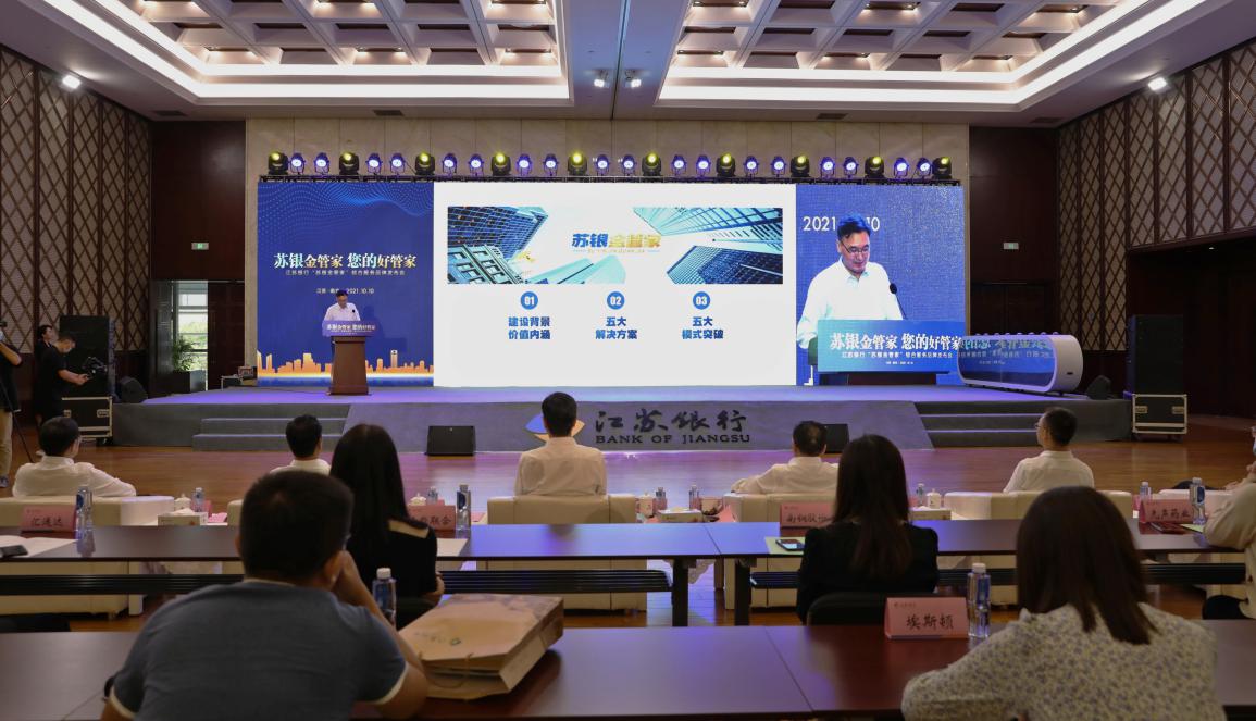 “‘蘇銀金管家’綜合服務(wù)品牌的推出,是江蘇銀行踐行金融為民情懷,弘揚(yáng)客戶至上服務(wù)理念,體現(xiàn)貼心專業(yè)管家精神的探索實踐,標(biāo)志著江蘇銀行客戶數(shù)字化綜合服務(wù)邁向新臺階?!痹撔懈毙虚L葛仁余在發(fā)布會上表示。