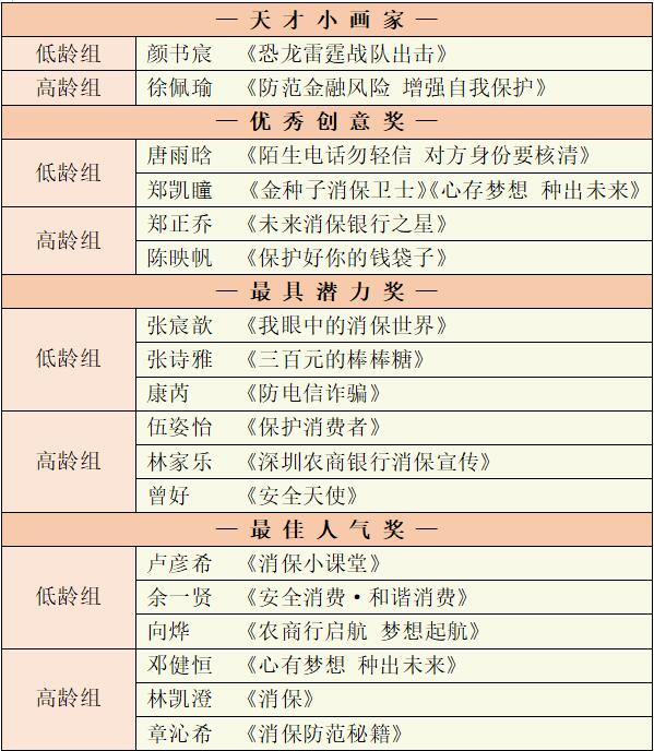 “我是小小繪畫(huà)家”獲獎(jiǎng)名單