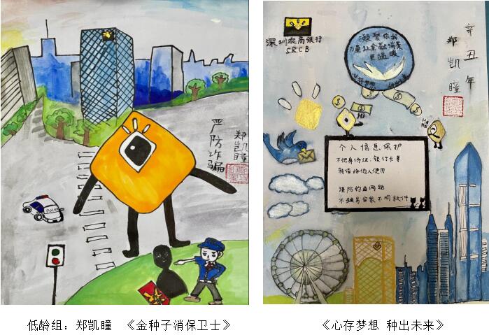 本屆“我是小小繪畫(huà)家”消保主題繪畫(huà)大賽,圍繞“孩子眼中的消保世界”題材展開(kāi),體現(xiàn)孩子對(duì)消費(fèi)者權(quán)益保護(hù)、金融風(fēng)險(xiǎn)防范、自我保護(hù)能力提升等方面的認(rèn)識(shí),通過(guò)畫(huà)筆,描繪孩子眼中的金融消保工作。同時(shí),也是積極落實(shí)中國(guó)人民銀行深圳市中心支行、深圳銀保監(jiān)局、深圳銀促會(huì)組織開(kāi)展的“金融知識(shí)普及月”“金融聯(lián)合教育宣傳月”活動(dòng)號(hào)召,聚焦青少年人群,開(kāi)展金融知識(shí)普及宣教活動(dòng)。