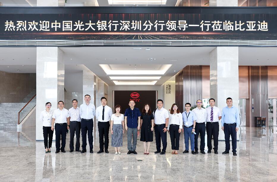 2018年12月11日,光大集團(tuán)與比亞迪在中國光大中心簽署戰(zhàn)略合作協(xié)議。次年9月,李曉鵬董事長前往深圳調(diào)研比亞迪,與比亞迪董事長兼總裁王傳福進(jìn)行工作會談,雙方合作更為密切。2021年6月9日,光大銀行深圳分行行長韓學(xué)智率隊拜訪比亞迪集團(tuán),雙方就踐行國家“創(chuàng)新、協(xié)調(diào)、綠色、開放、共享”發(fā)展理念,進(jìn)一步落實中國光大集團(tuán)與比亞迪集團(tuán)重要戰(zhàn)略合作協(xié)議,深化綜合金融服務(wù),加強(qiáng)協(xié)同聯(lián)動發(fā)展等方面進(jìn)行座談,為下一步光大銀行與比亞迪集團(tuán)的合作打下堅實的基礎(chǔ)。