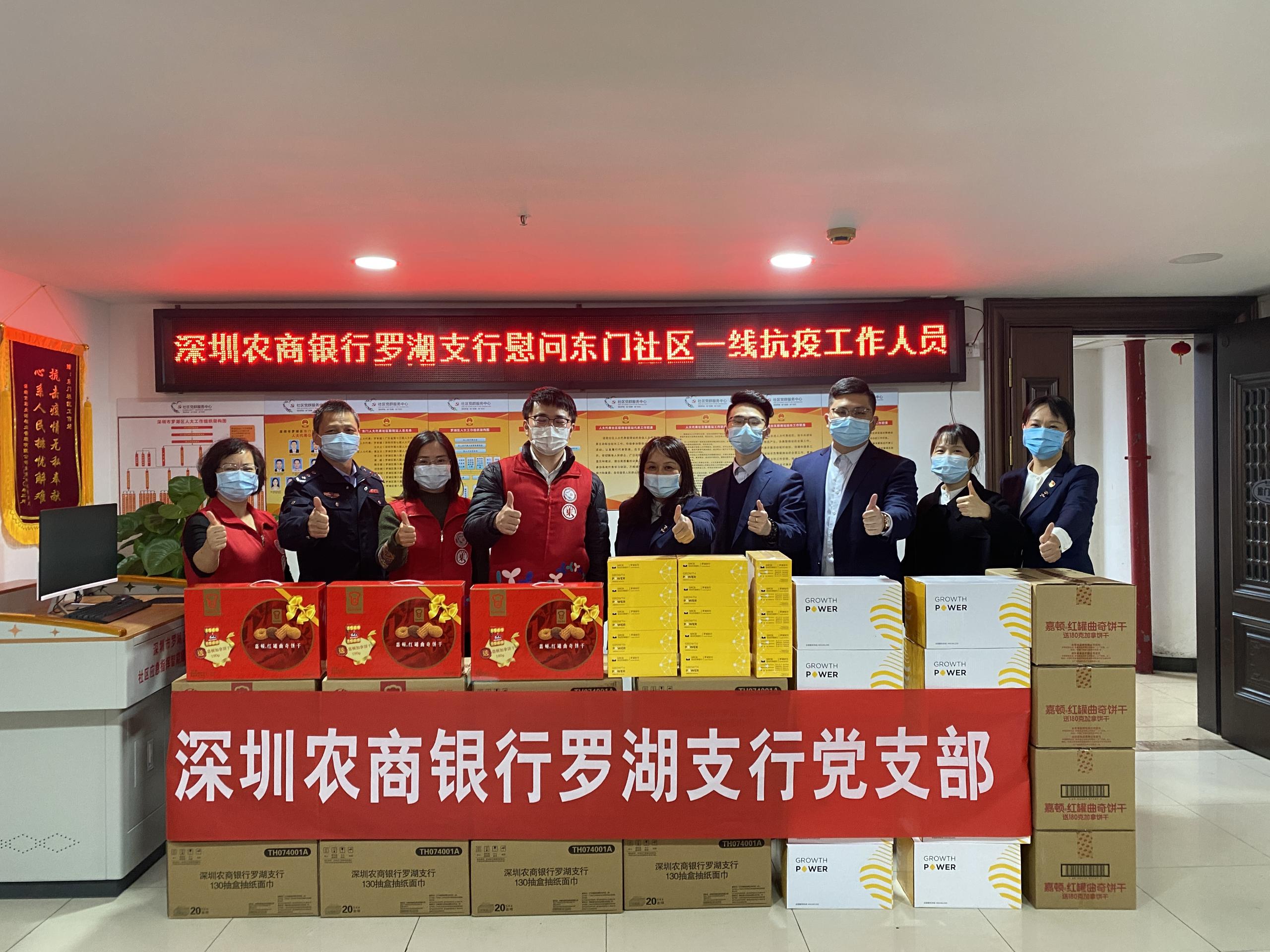 雖不能上前線抗疫,但作為羅湖區(qū)的本地金融企業(yè),在看到抗疫人員的辛苦付出后,深圳農(nóng)商銀行羅湖支行主動(dòng)發(fā)起“情暖疫線,羅湖加油”活動(dòng),轄下各網(wǎng)點(diǎn)員工在做好疫情防控前提下,為一線抗疫人員送上曲奇餅、紙巾、礦泉水等溫暖物資,慰問(wèn)抗疫人員,積極履行作為金融企業(yè)的社會(huì)責(zé)任。截至目前,活動(dòng)共覆蓋羅湖草埔東、蓮塘、黃貝嶺等八個(gè)社區(qū),并在繼續(xù)開展中。