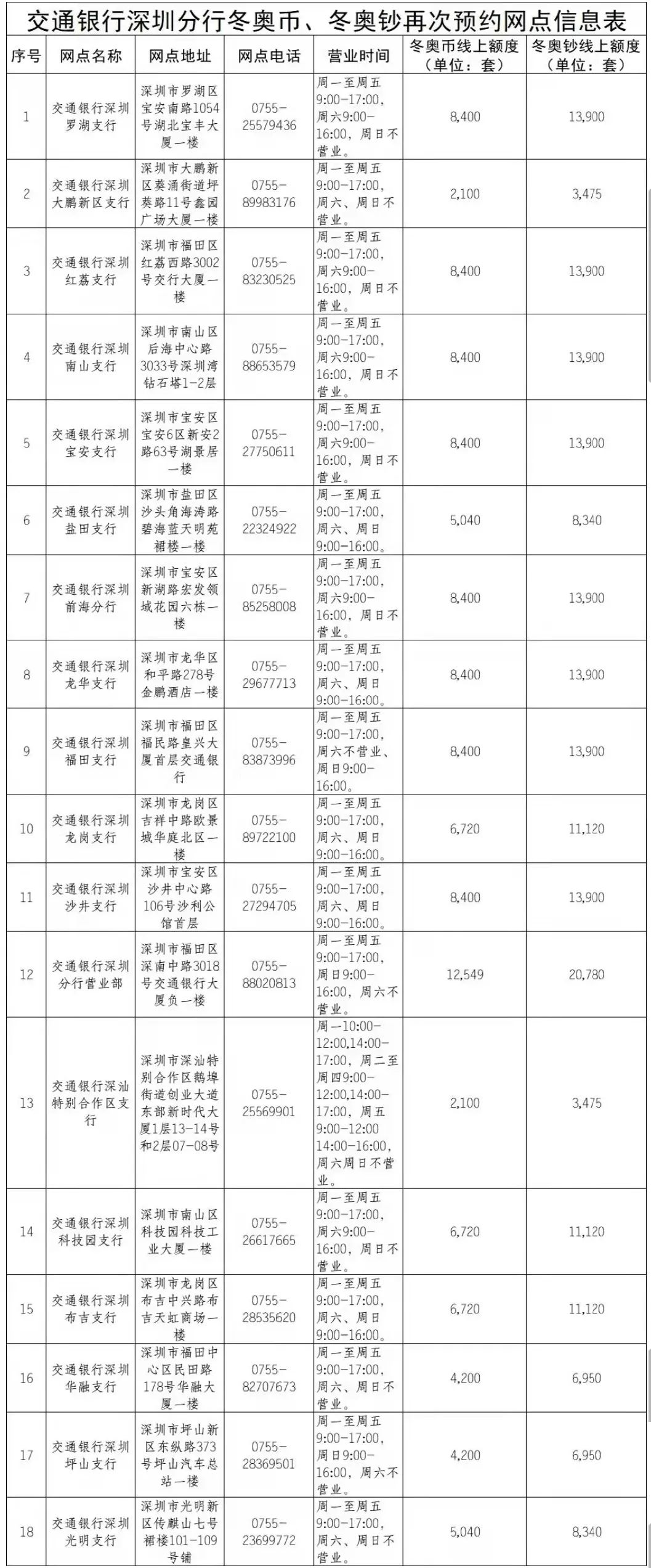 此次預(yù)約全部通過深圳交通線上渠道辦理,預(yù)約期內(nèi)先到先得,約滿為止。冬奧幣、冬奧鈔每人預(yù)約限額分別為20套。具體預(yù)約兌換網(wǎng)點及線上額度信息請查看附件。