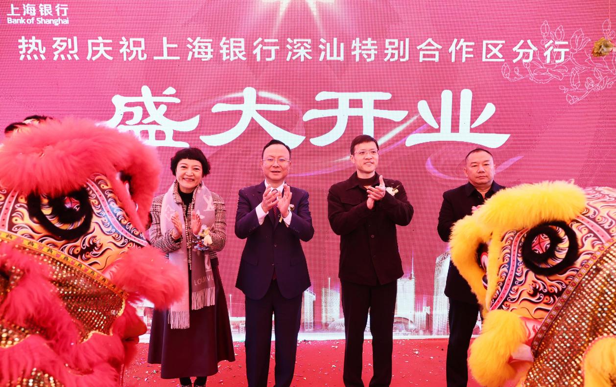 上海銀行朱健行長和深汕特別合作區(qū)管委會吳曲波主任共同為深汕特別合作區(qū)分行揭牌