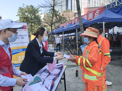 在筍崗街道,社區(qū)工作人員特地在核酸檢測點(diǎn)為環(huán)衛(wèi)工人們設(shè)置“綠色通道”,幫助他們快速完成核酸檢測??紤]到環(huán)衛(wèi)工人們普遍辨別能力較為薄弱,缺乏網(wǎng)絡(luò)與金融相關(guān)知識,容易成為被騙對象,志愿者們一一上前,深入淺出地為他們普及了防范電信網(wǎng)絡(luò)詐騙和非法集資等金融基礎(chǔ)知識,提醒不要輕易將個(gè)人信息泄露,讓環(huán)衛(wèi)工人掌握識破騙局的方法。
